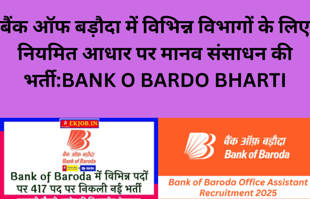 बैंक ऑफ बड़ौदा में विभिन्न विभागों के लिए नियमित आधार पर मानव संसाधन की भर्ती